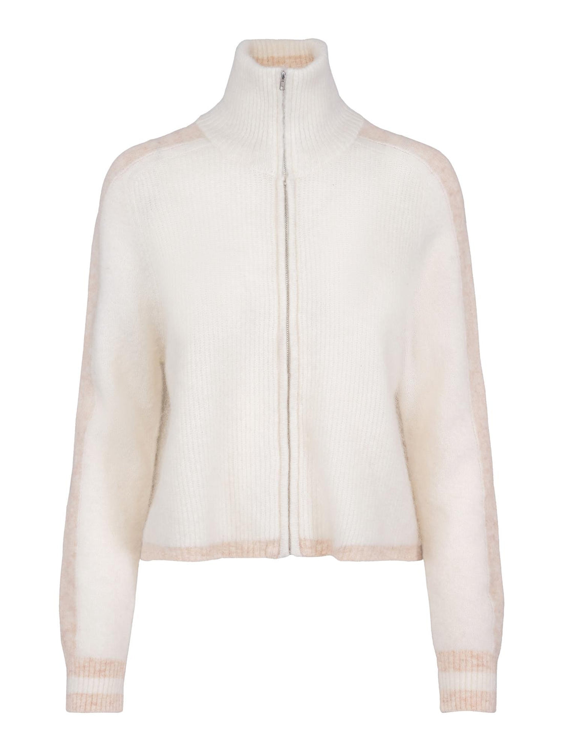LYRA MOHAIR JAKKE, OFF WHITEStrikket i supermyk og eksklusiv kid mohair–ull. Har fine strikkedetaljer, glidelås...