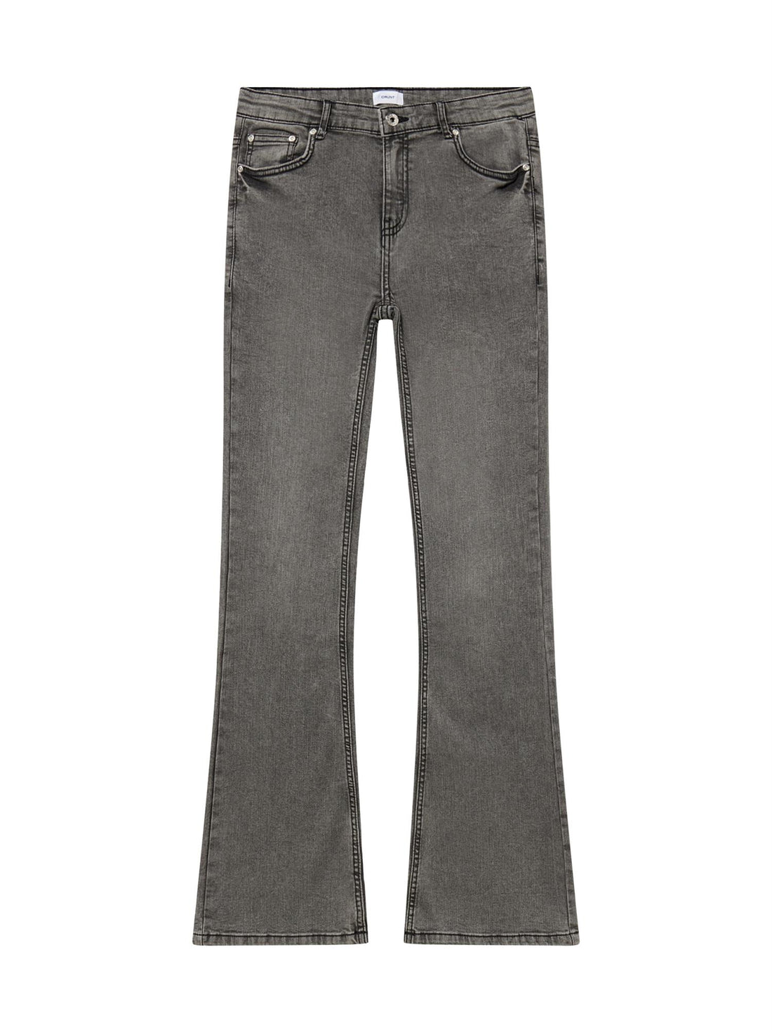Texas flared jeans med fem lommer og glidelås/knappelukking. Løs fra kne til ankel. Tett passform...