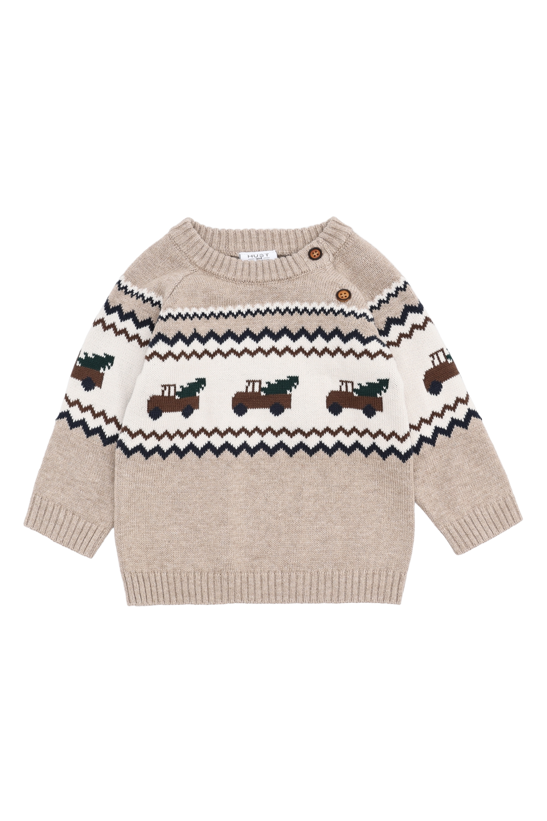 Glattstrikket genser i myk bomull med motiv foran. Modellen har rund hals og ribbestrikkede kanter.100...
