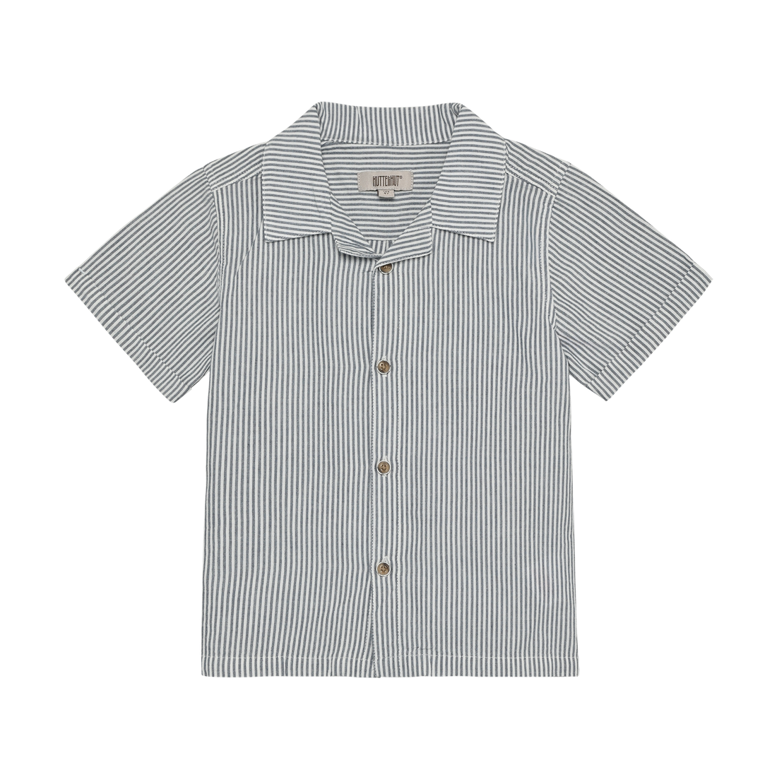 Stripete skjorte fra HUTTEliHUT med korte ermer. Skjorten har en klassisk krage, en liten oppbrett...