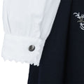 Hvit skjorte i 100% bomull med blondekanter rundt krage, mansjetter og brystklaff. Tinnfarget knapp på hver mansjett.