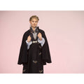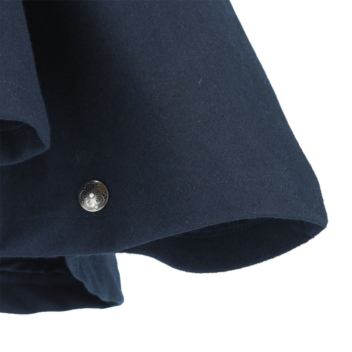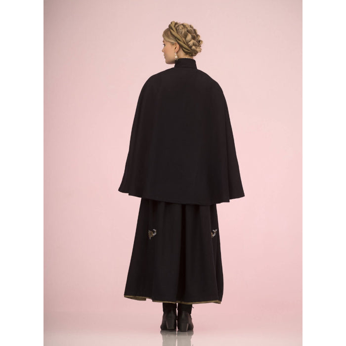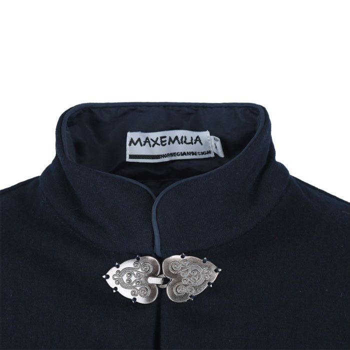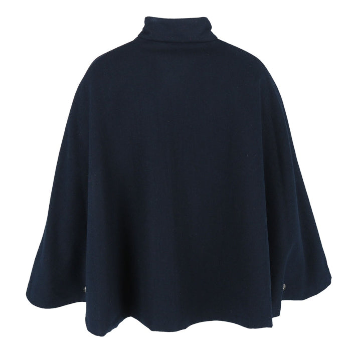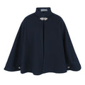 Anna cape er laget i mørk marineblå ullblanding ( 65% ull og 35% viskose) og er fôret med marineblå kunstsilke i 100% polyester.