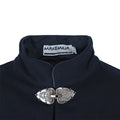 Capen har en lekker tinnfarget knapp i hver side som deler av for åpning til ermer.