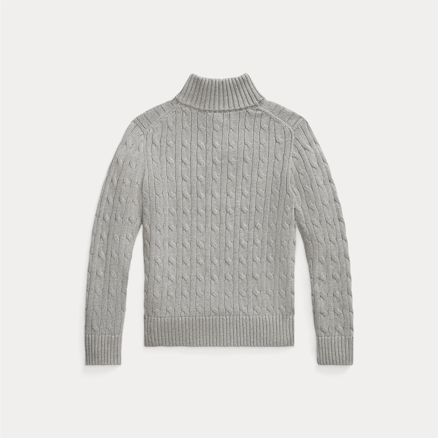 Half-zip fra Polo Ralph Lauren. Den er produsert i bomull med flettestrikk og har den ikoniske logoen på venstre bryst.