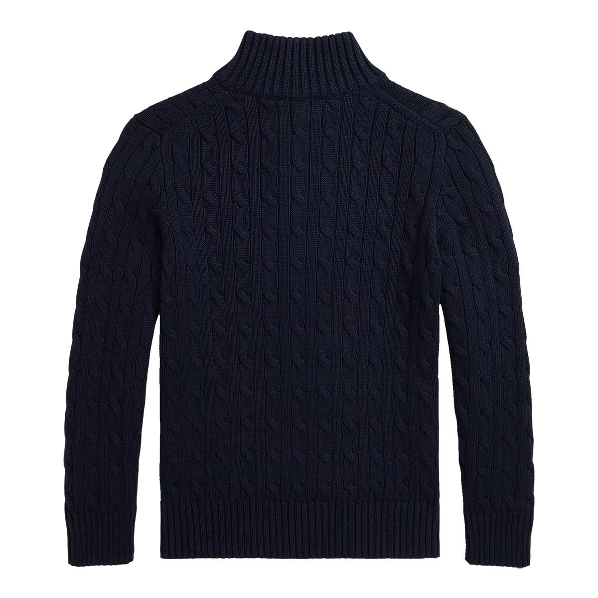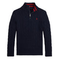 Half-zip fra Polo Ralph Lauren. Den er produsert i bomull med flettestrikk og har den ikoniske logoen på venstre bryst.