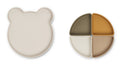 Tallerken med 4 skilletallerkener. Alle delene kan brukes hver for seg eller sammen.