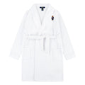 RLN BEAR PATCH ROBE fra Ralph Lauren er en myk og behagelig morgenkåpe for barn. Kåpen har en lekker kritthvit farge, en brodert bjørn/ teddy på venstre bryst, to lommer, krage og belte rundt livet.