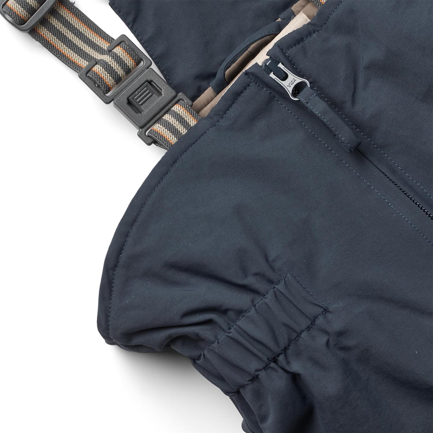 Den tekniske buksen er beregnet for vinteren, da den har mykt fôr og er laget for å holde barnet ditt varmt hele dagen. Buksen har mange praktiske detaljer som justerbare seler og gummistropp under føttene. De er tilgjengelige i vakre farger og håndtegnede utskrifter laget av Wheats interne designteam.