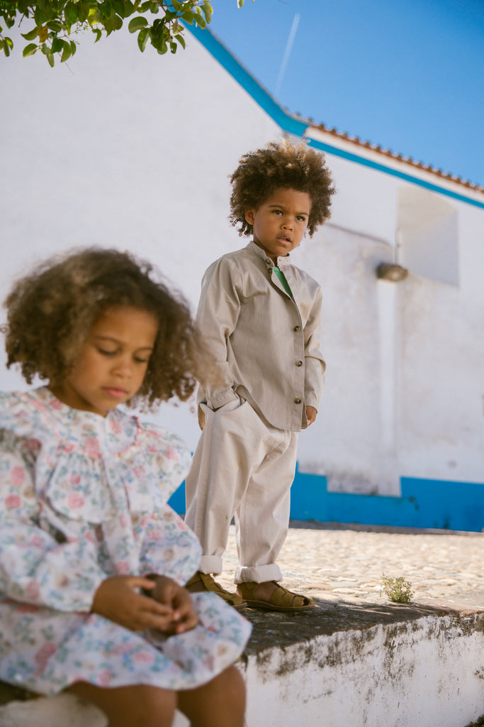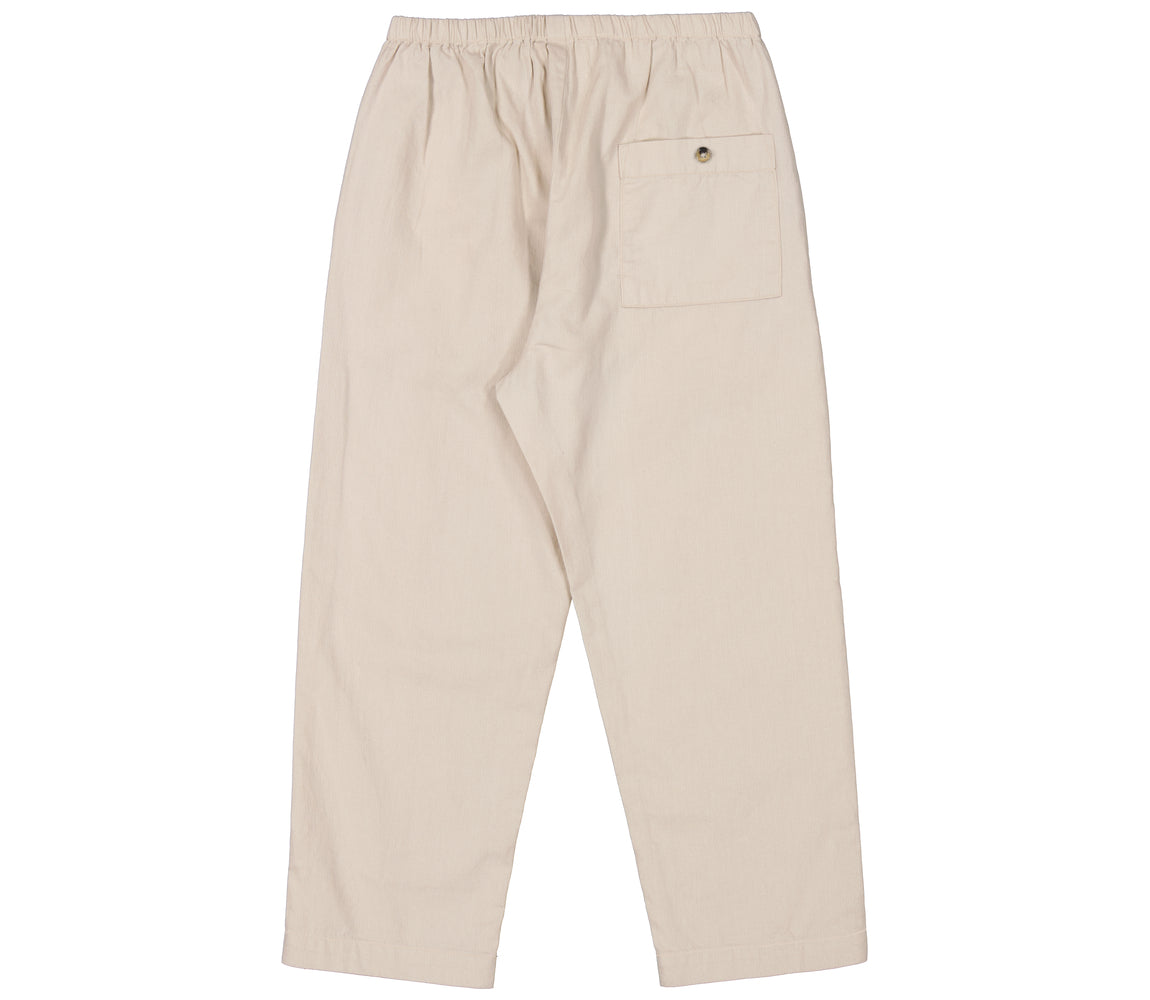Behagelige bukser med løs passform, lomme bak og strikk i midjen.
