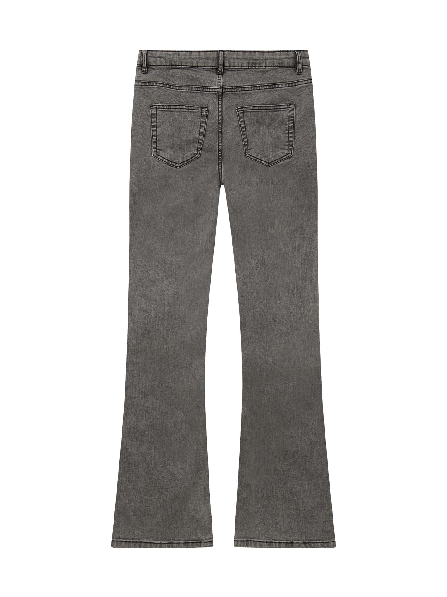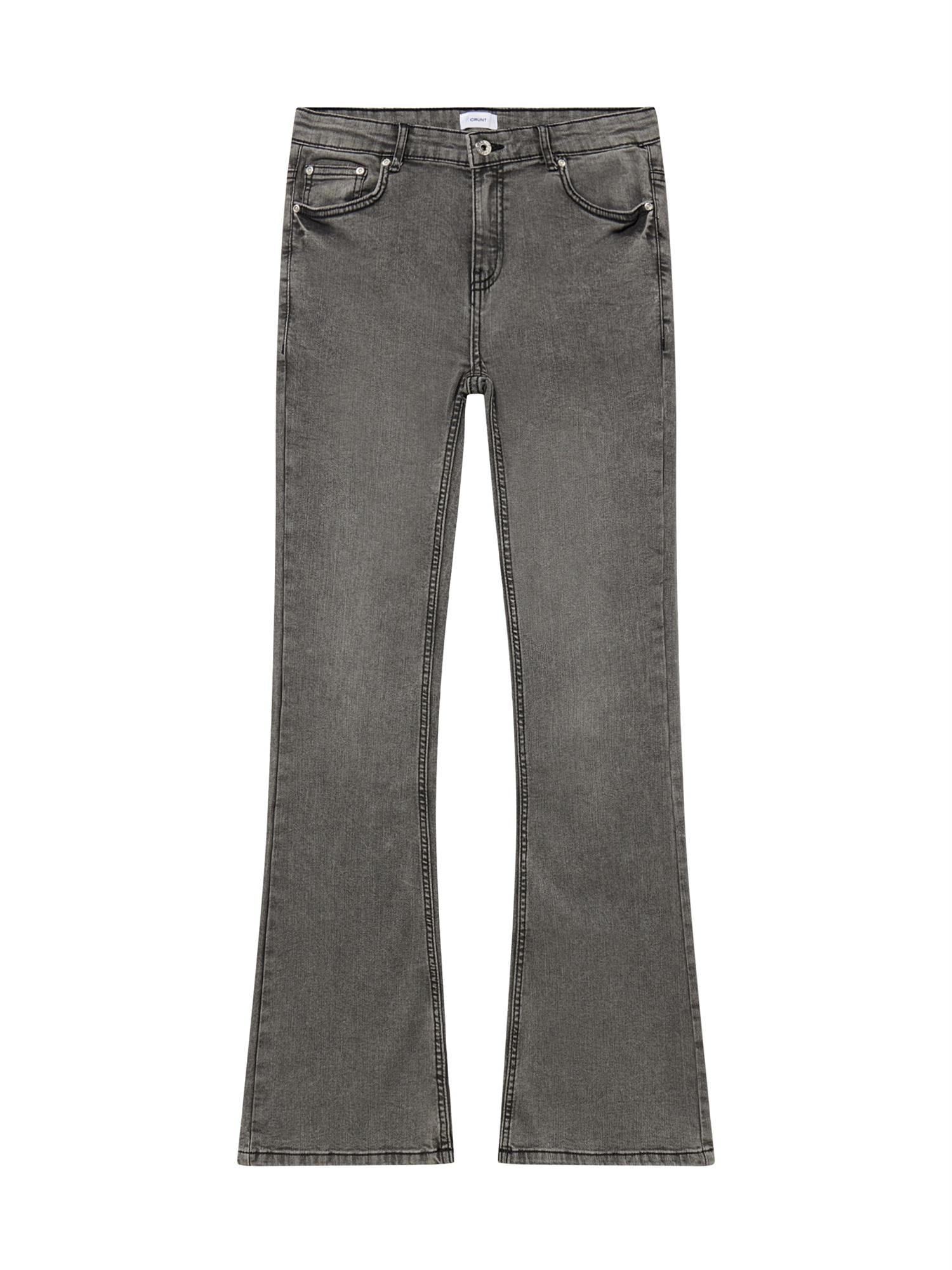 Texas flared jeans med fem lommer og glidelås/knappelukking. Løs fra kne til ankel. Tett passform ved lårene. Myk bomullskvalitet med stretch. Vintage blå vask.