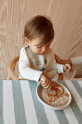 Praktisk smekke som hjelper til med å gjøre måltidene litt mindre grisete. Genial oppsamler for mat som ikke rekker til munnen.