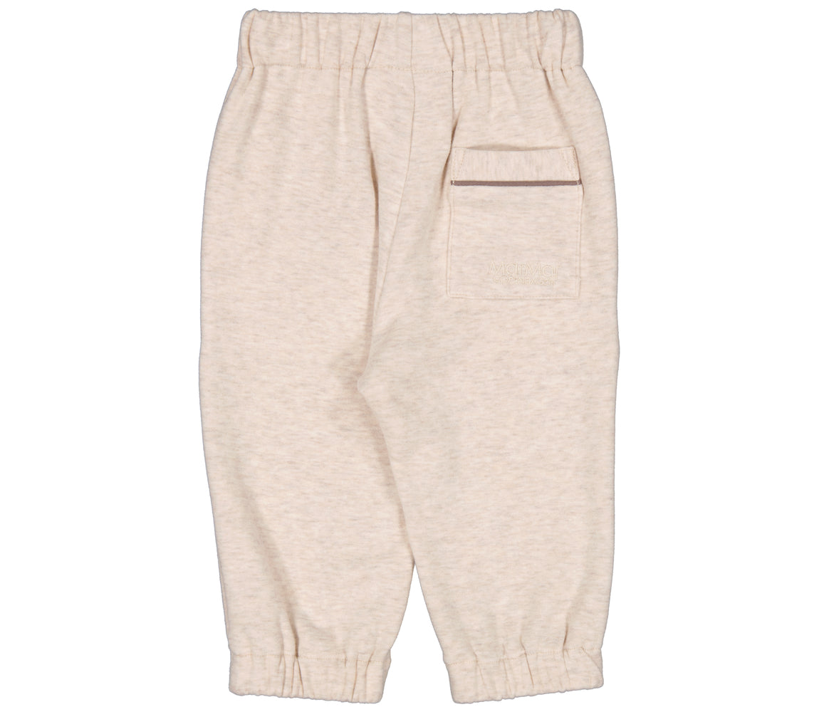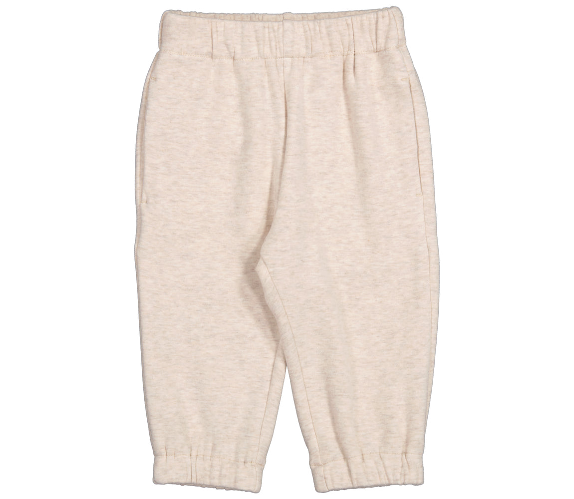 Myk babyjoggebukse i løsere passform med strikk i midjen og nederst, to sidelommer og en lomme med logobroderi bak. Joggebuksen er veldig myk og behagelig å ha på.