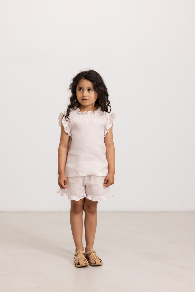 Søt topp med volanger fra Marmar i dus rosa. Knepping bak på rygg