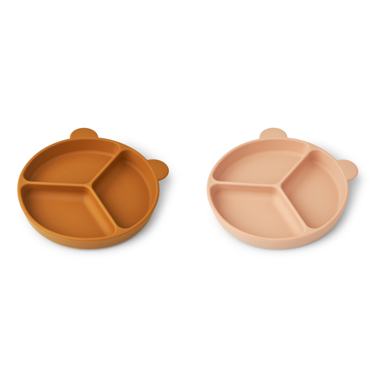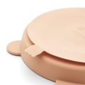 Den rominndelte Stacy-tallerken med søte dyredetaljer har en tynn silikonebunn, som sitterfast på alle overflater og gjør det nesten umulig for barn å løfte eller velt