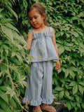 Bukser i myk vevd kvalitet. Buksen har strikk i midjen og volang nederst. Buksene er trekvart lange og har en løs passform som gjør den behagelig å ha på. Buksene har et fint grafisk trykk. Vår AMIE RUFFLE TOP passer perfekt til buksene, siden den har samme print og myke kvalitet.