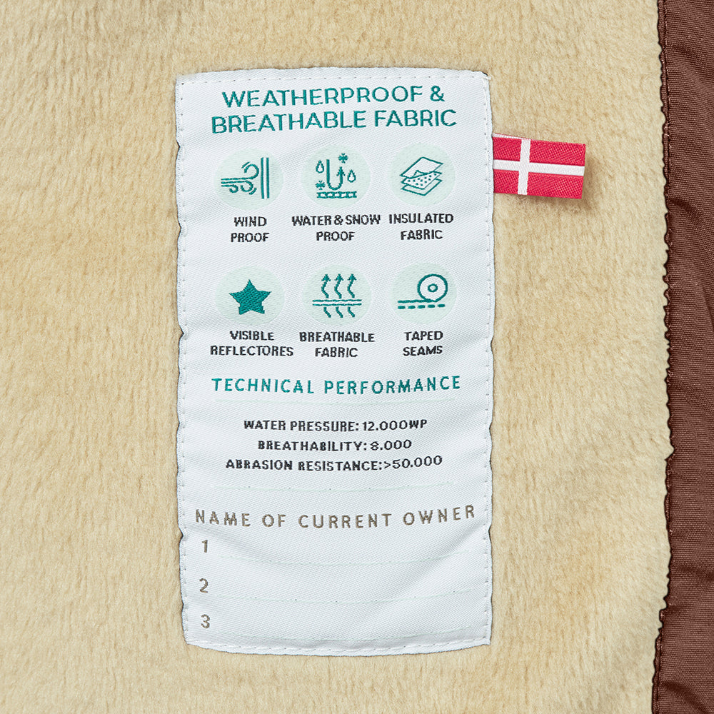 Informasjon: Slitasjestyrke: 50 000+ Martindale Bionic Finish® Eco-belegg, flourfri Pustende egenskaper: 8 000 g/m²/24t Refleks: 70 lux, synlig fra 300 meter Teipede sømmer: Ja Vanntett (WP): 12 000 mm
