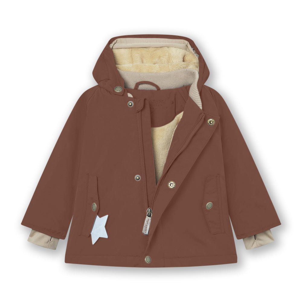 Ikonisk MINI A TURE vinterjakke med 10 års garanti. Jakken er vind- og vanntett, pustende og testet for å holde varmen ned til -25 grader Celsius. Med avtakbar hette som kan justeres med en elastisk snor for å holde vinden ute. Forbedret ermepassform for å sikre bevegelsesfriheten, samt snømansjetter ved håndleddene med tommelåpning. Midjen er justerbar fra innsiden med en elastisk snor. Jakken har et mykt, varmt fleecefôr. Størrelser opp til og med størrelse 86 cm (18m) har ribbestrikk rundt halsen, mens de større størrelsene har en vanlig krage. MINI A TURE signaturrefleksstjerne i høyre lomme.