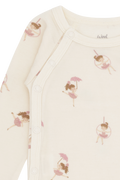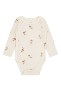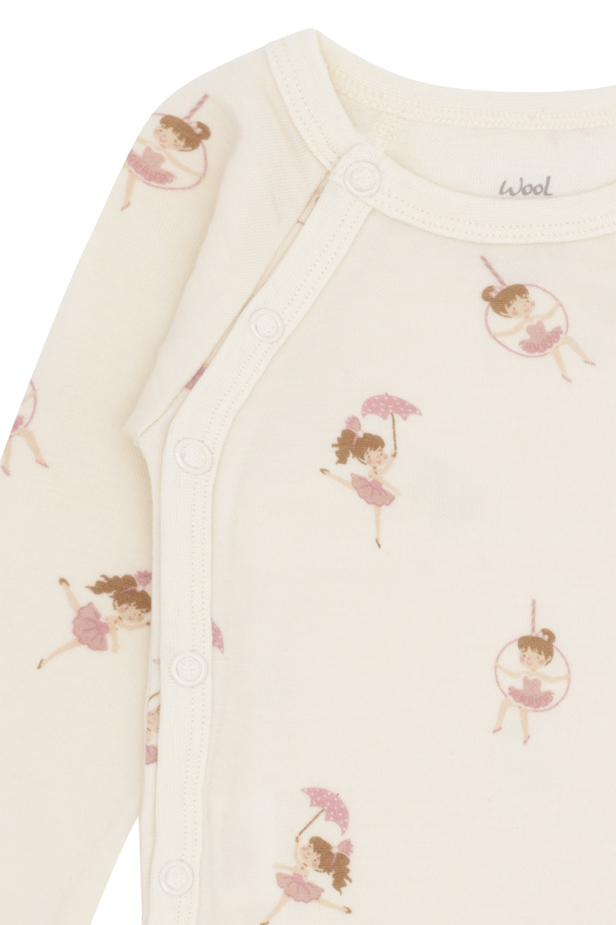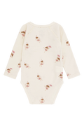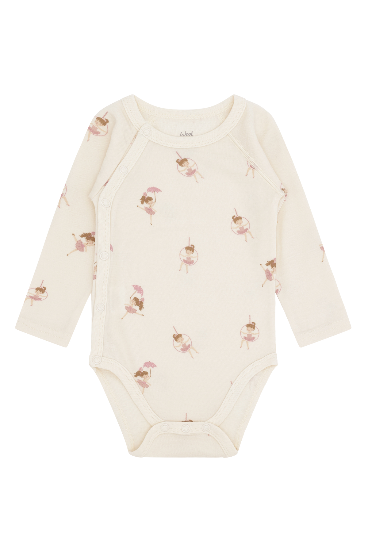 Langermet oslagsbody i behagelig, elastisk ull- og bambuskvalitet med trykk. Kneppes på siden og mellom bena. Alt stoff som treffer huden er i bambus, slik at plagget også passer til de med sensetiv hud.