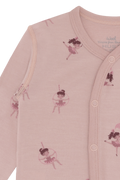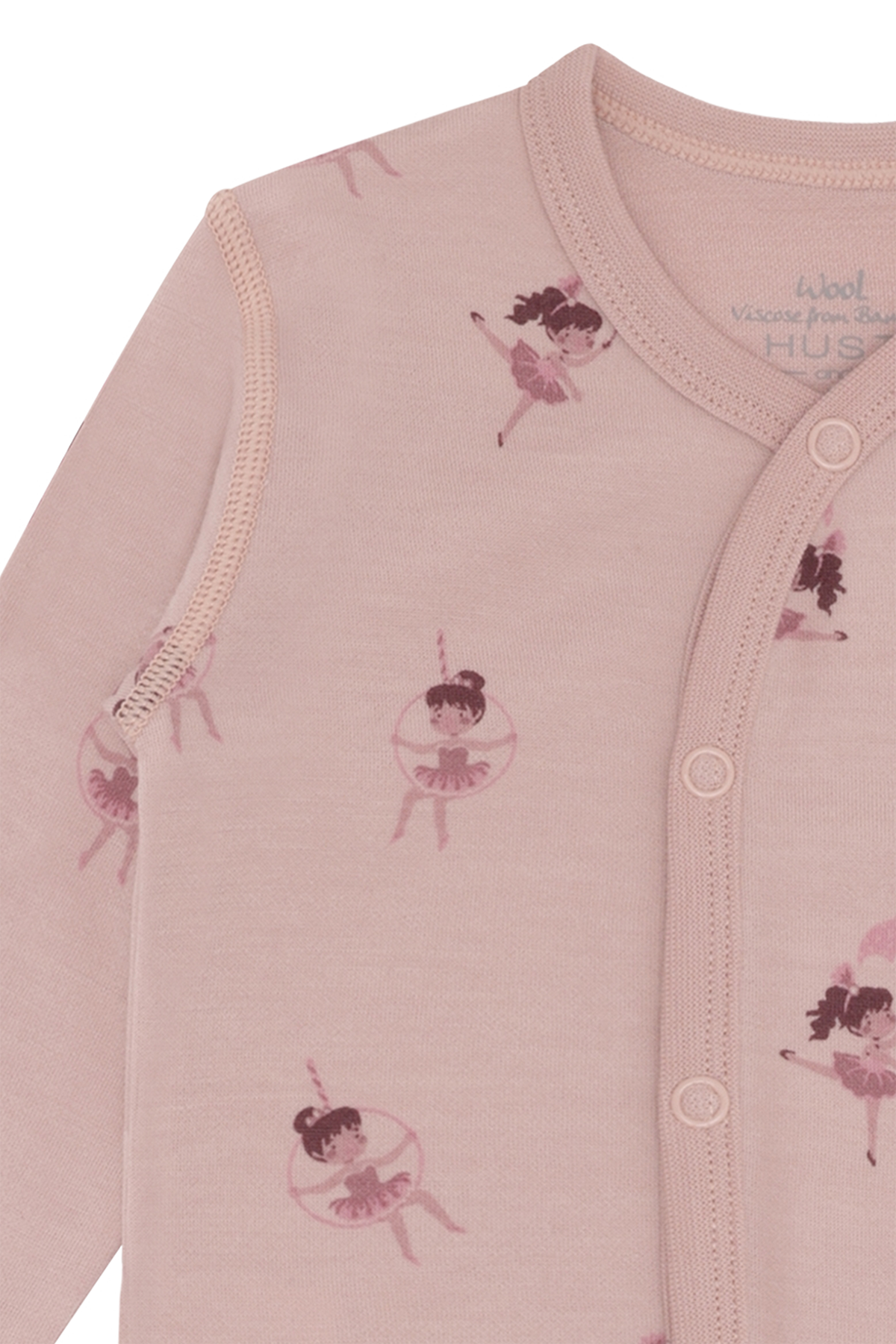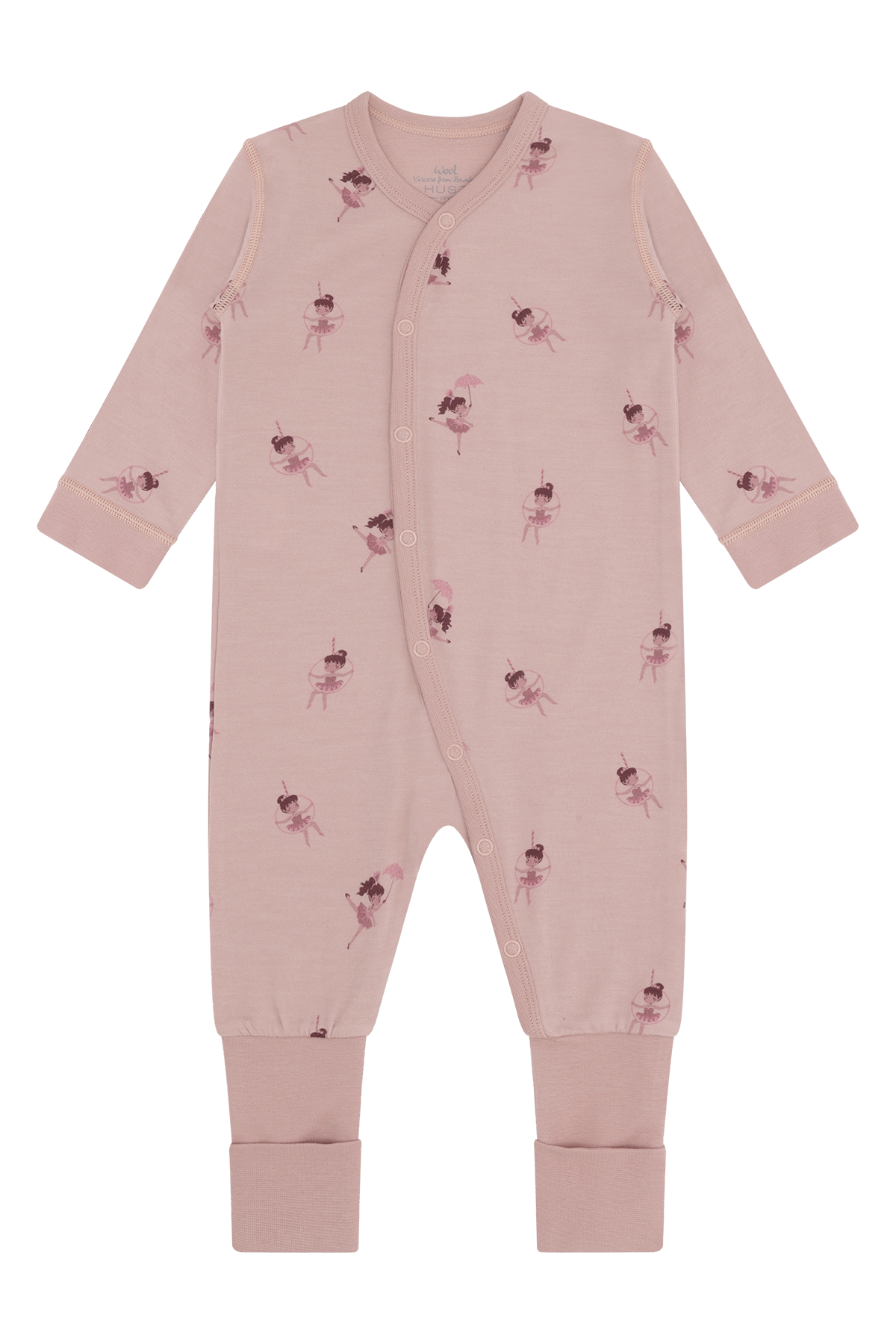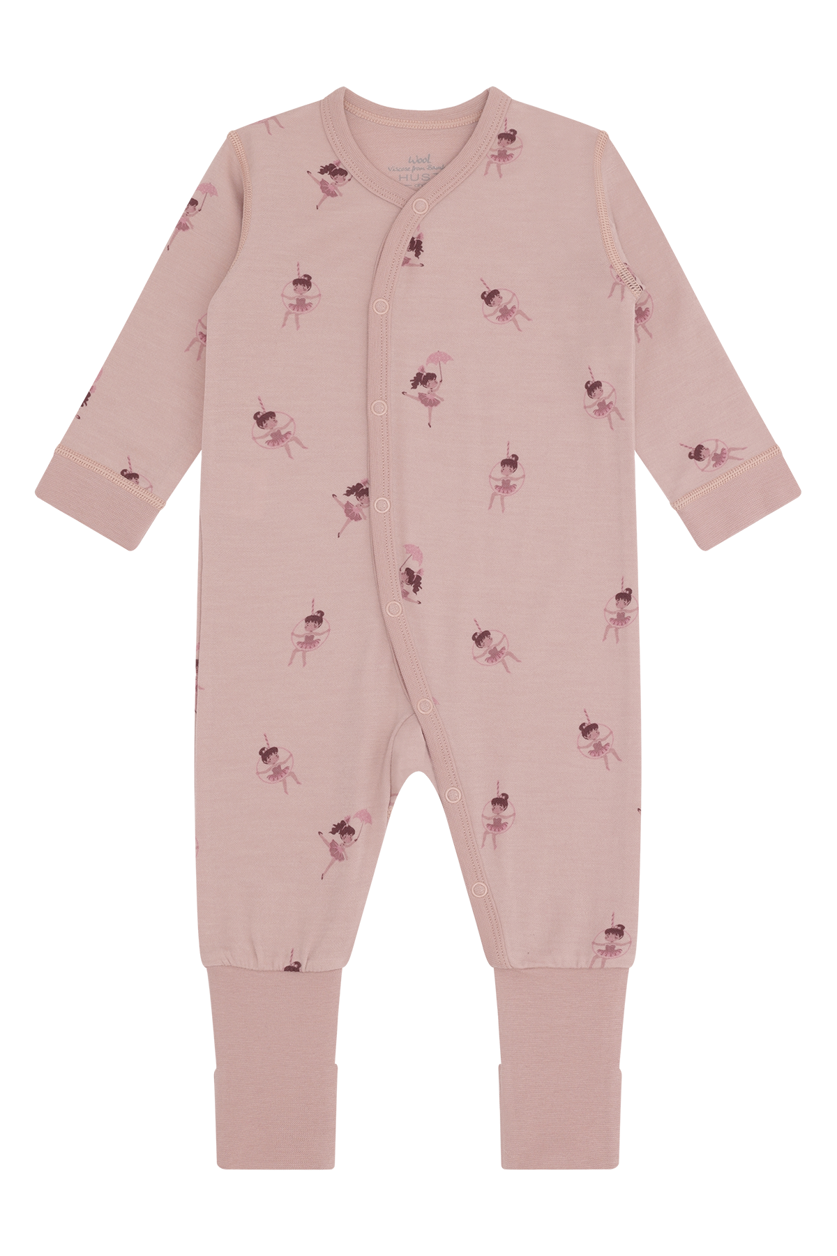 Langermet heldrakt i behagelig, elastisk ull og bambusviskose. Heldressen lukkes med knapper i front med omslagslook ned over magen og venstre fot. Ved føttene er det festet et langt stykke som man kan få foten gjennom, men som også kan brettes og brukes som en sokk. Det er foldefot opp til størrelse 86. Ull på utsiden og bambusviskose på innsiden.