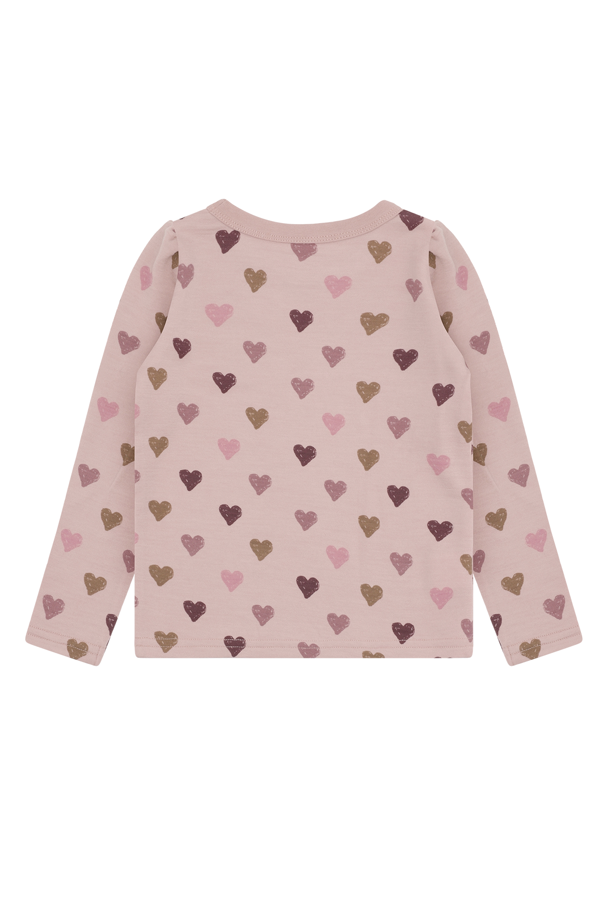 Langermet Hust & Claire genser til barn i myk, elastisk bambus- og ullkvalitet med print. Genseren har bambusviskose på innsiden og ull på utsiden, slik at plagget også passer til barn med sensetiv hud.