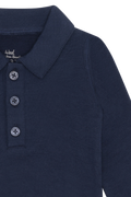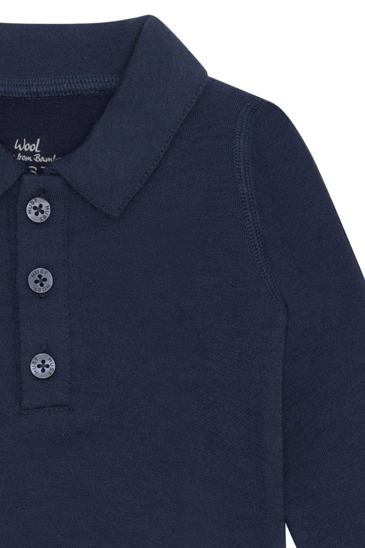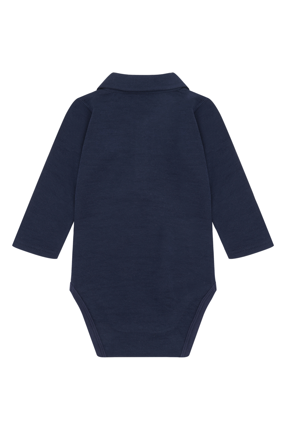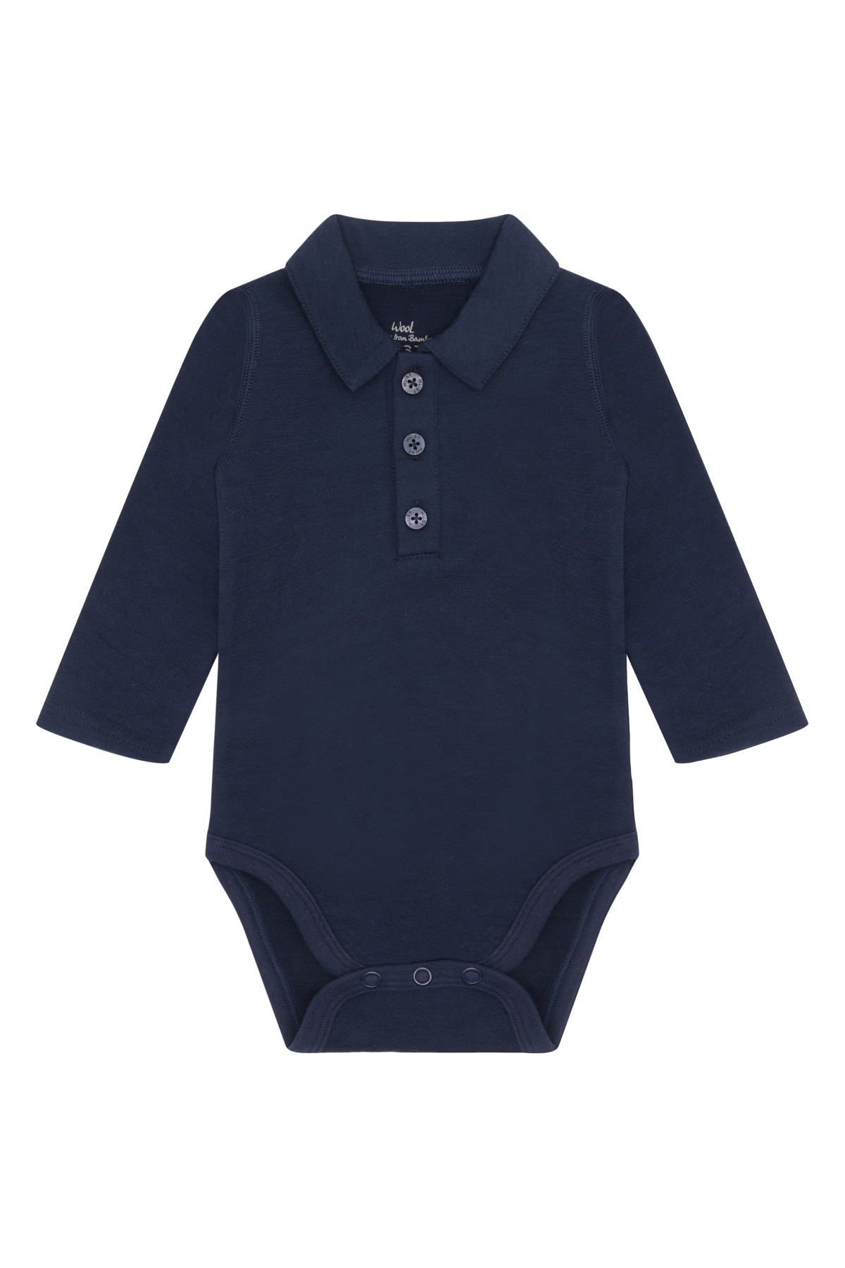Langermet Hust & Claire body i myk, elastisk ull- og bambuskvalitet med krage. Kneppes på brystet og mellom bena.