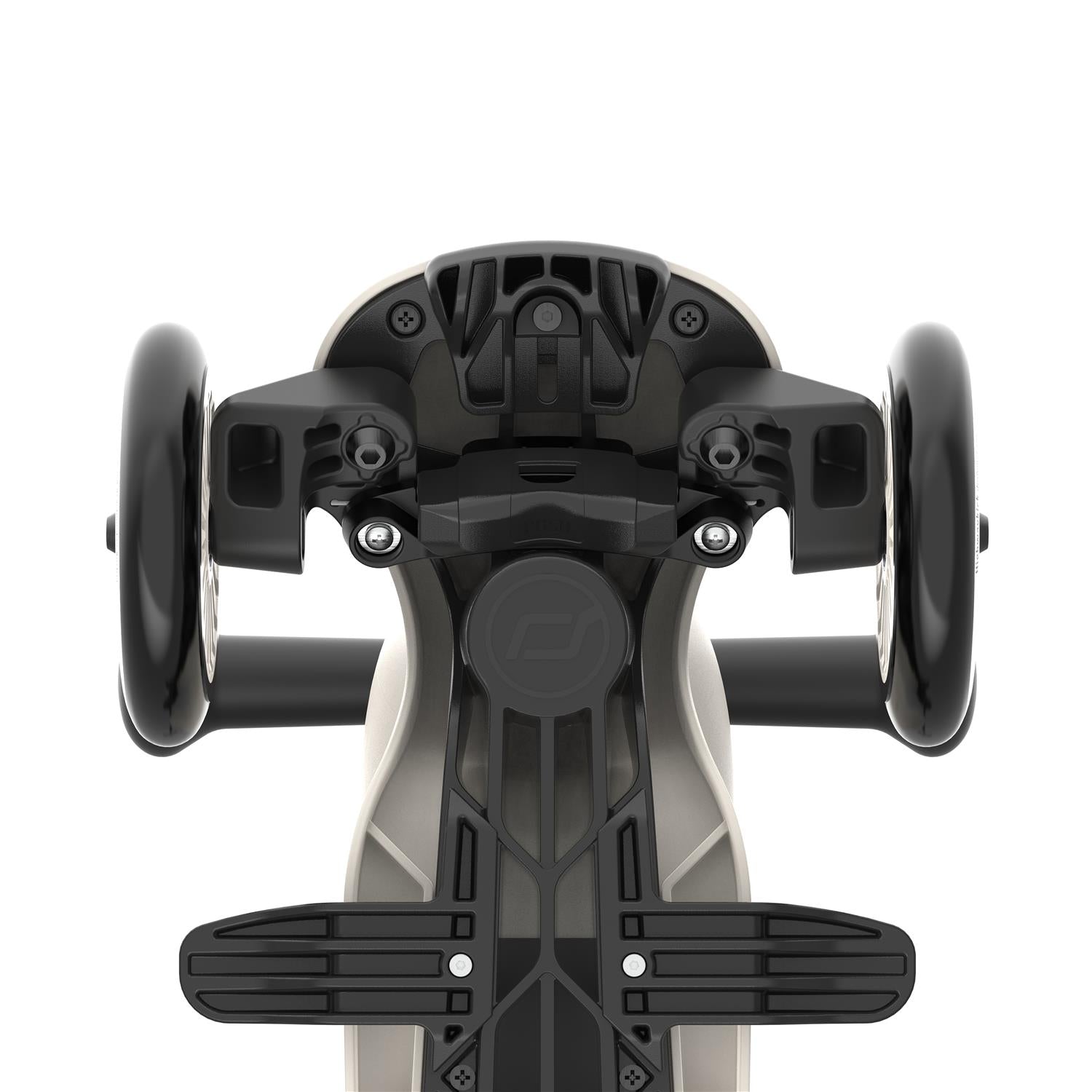 Highwaykick 1 Push and Go kombinerer alle fordelene med Highwaykick 1 med en ny, viktig funksjon: foreldre-skyvestangen. Nå er det mulig å skyve barn mellom ett og tre år komfortabelt, både sittende og stående. Den praktiske skyvestangen kan festes til fotbrettet på sparkesykkelen uten verktøy og kan justeres i tre forskjellige høyder. Fotstøtter kan også festes til fotbrettet slik at barna kan hvile føttene komfortabelt mens de blir skjøvet. Alle de velkjente funksjonene til Highwaykick 1, som 2-i-1-systemet og den høydejusterbare setet, er bevart med Push and Go. Dette betyr at denne modellen også vokser med barnet ditt.