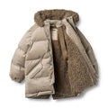 Pufferjakke med Sherpafor i myk cordfløyel for barn. Wheats pufferjakke med teknisk polstring er perfekt for de mange kalde høst- og vinterdagene. Den er designet med høy holdbarhet og komfort i tankene.