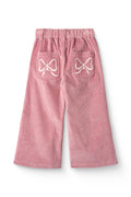 Bukser fra Copenhagen Colors med en avslappet og komfortabel passform. De er laget av 100 % fløyel og har to baklommer, hver dekorert med en delikat sløyfe. Buksene lukkes med knapp og glidelås foran og har justerbar linning.