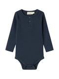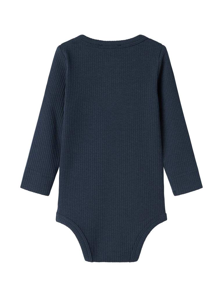 Langermet babybody i modal med knappestolpe, som lukkes med trykknapper mellom bena for enkelt bleieskift. Bodystockingen er ribbet, myk, holder form og farge og har elastan, noe som gjør den elastisk og behagelig å ha på seg.