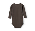 Nydelig body i ull pointelle fra Marmar. Bodyen har knapper og knytting i siden, så den slipper å tas over hodet