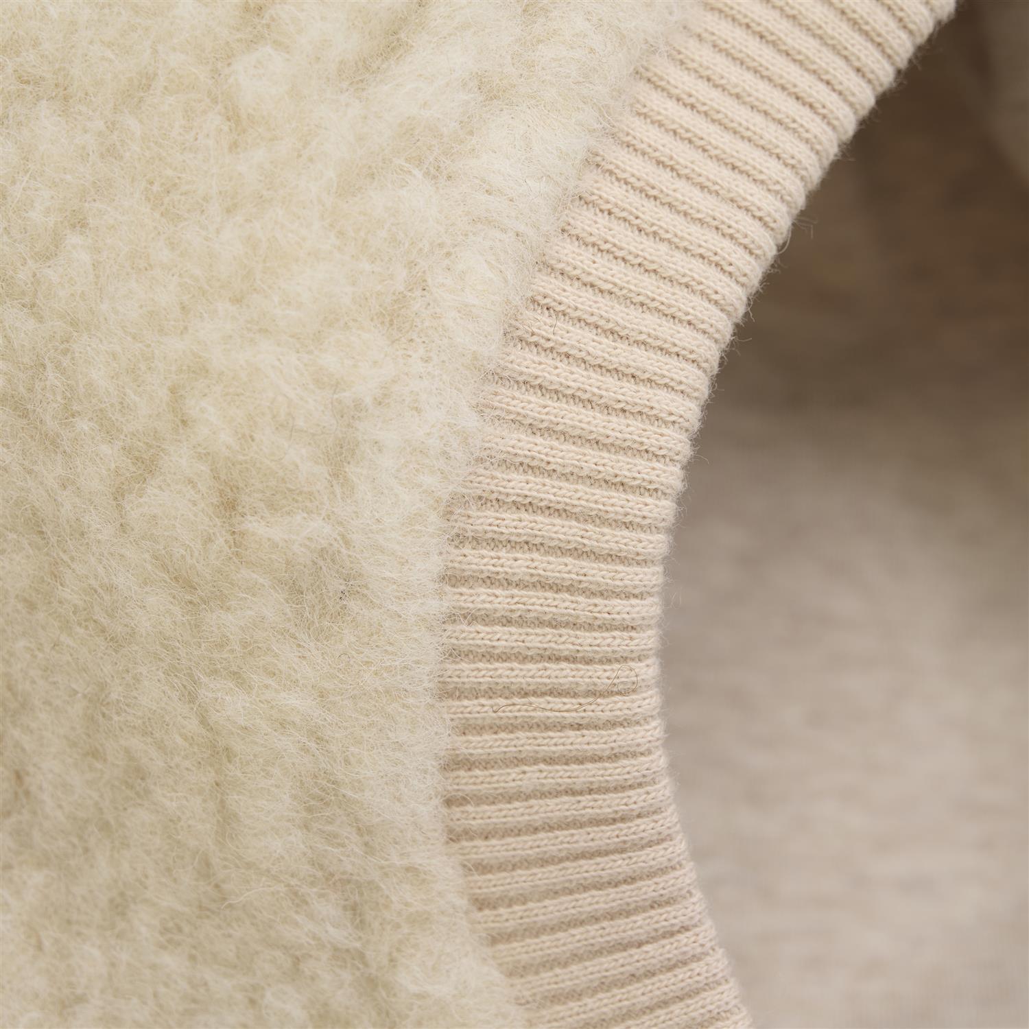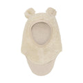 Deilig og varm HUTTEliHUT Teddy-balaklava i to lag. Med søte bamseører. HUTTEliHUT har en bred, elastisk ribbekant ved ansiktsåpningen, noe som sikrer en tettsittende passform. Luen har en praktisk splittdesign med ekstra lengde i halsen. Laget i en deilig merinoull-teddy med et mykt fôr i bomullsjersey på innsiden. Dette produktet er laget av ull, kjent for sin holdbarhet hvis det stells riktig: Vask det kun når det er nødvendig. Velg et skånsomt ullvaskemiddel. Ikke bruk tøymykner. Velg alltid skånsom ullvask i maskin, og vreng plagget. Bruk lav sentrifugering. Form plagget når det er vått. Bruk lunkent vann for håndvask og unngå å vri det opp. Trykk forsiktig med et håndkle for å fjerne overflødig vann. Legg det flatt på et håndkle for å tørke – ikke legg det på en radiator eller i en tørketrommel.