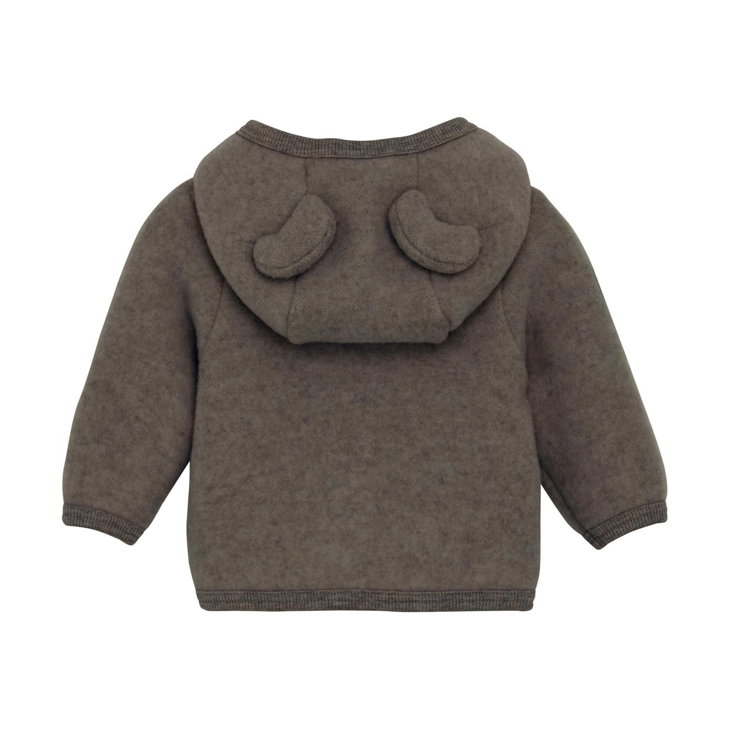 Nydelig Huttelihut-jakke i ullfleece. Huttelihut-jakken har en fast hette med søte bamseører. Den har lange ermer og smale, myke ribbekanter i alle åpninger. Jakken åpnes foran med glidelås med hakebeskyttelse. Huttelihut-jakken er laget av merinoull. Sertifisert i henhold til OEKO-TEX® STANDARD 100. Sertifiseringsnr. 2276-364 DTI. Dette produktet er laget av merinoull, og det er WOOLMARK – Pure New Wool-sertifisert under lisensnummer nm: 0030001353 av THE WOOLMARK COMPANY. Dette produktet er laget av ull, kjent for sin holdbarhet hvis det behandles riktig: Vask det kun når det er nødvendig. Velg et skånsomt ullvaskemiddel. Ikke bruk tøymykner. Velg alltid skånsom ullvask i maskin, og vreng plagget på vrangen. Bruk et lavt sentrifugeringsprogram. Form plagget når det er vått. Bruk lunkent vann for håndvask og unngå å vri det opp. Trykk forsiktig med et håndkle for å fjerne overflødig vann. Legg flatt på et håndkle for å tørke – ikke legg på en radiator eller i en tørketrommel.