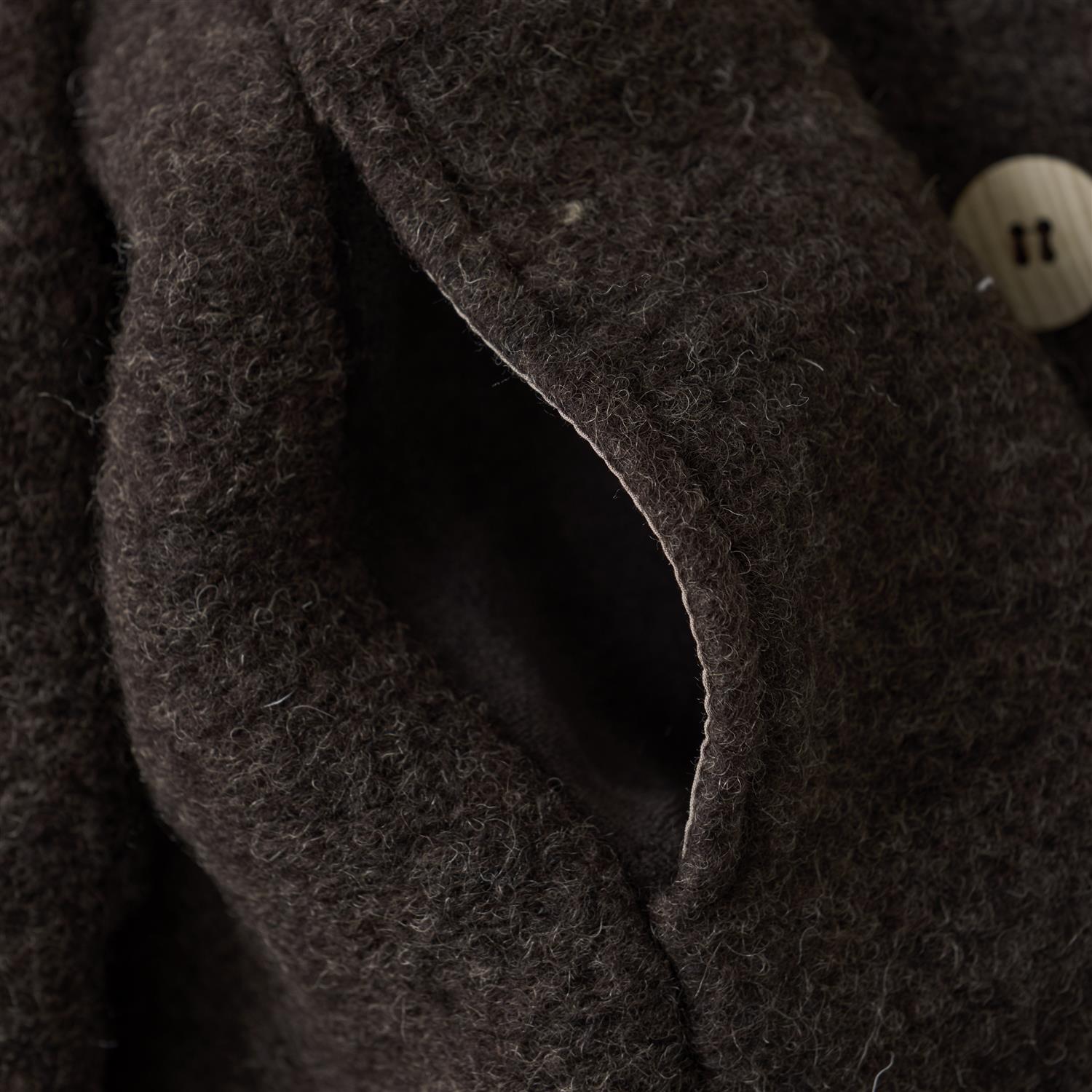 Vakker jakke fra HUTTEliHUT i et pent design. HUTTEliHUT-jakken er i 2 lag, med fine treknapper og lommer på sidene. Jakken har en fast hette med en spiss hodeform, noe som gir den et veldig søtt utseende. HUTTEliHUT-jakken er laget i en fin merinoullblanding, med et mykt velourfôr på innsiden. Dette produktet er laget av ull, kjent for sin slitestyrke hvis det stelles riktig: Vask det kun når det er nødvendig. Velg et skånsomt ullvaskemiddel. Ikke bruk tøymykner. Velg alltid skånsom ullvask i maskin, og vreng plagget. Bruk et lavt sentrifugeringsprogram. Form plagget mens det er vått. For håndvask, bruk lunkent vann og unngå å vri det opp. Trykk forsiktig med et håndkle for å fjerne overflødig vann. Legg det flatt på et håndkle for å tørke - ikke legg det på en radiator eller i en tørketrommel.