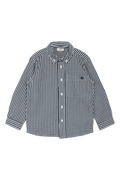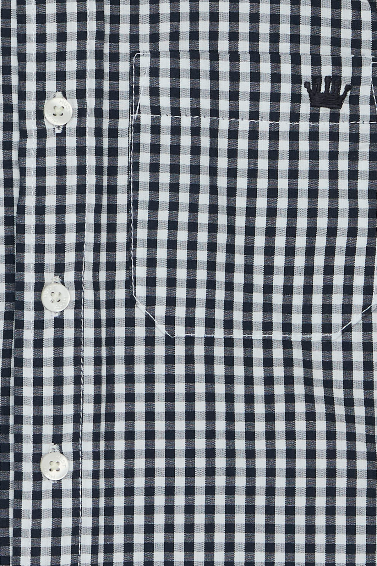 Nydelig skjorte laget av bomullspoplin med rutemønster. Skjorten er klassisk med krage og mansjetter, en pent avrundet fald og en kul logobrodert brystlomme. Kragen på denne modellen kan festes med knapper, og skjorten lukkes med vanlige knapper helt ned foran.