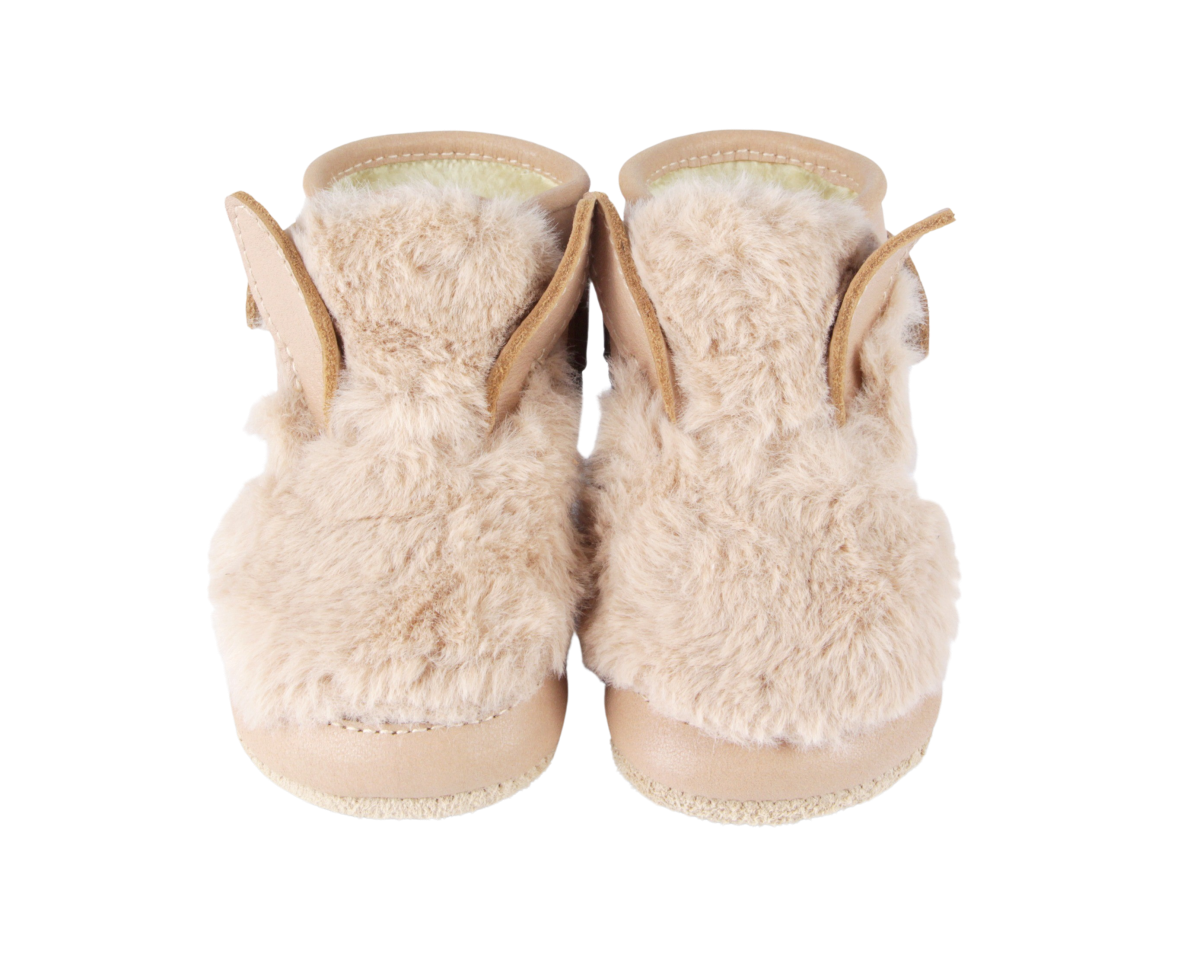 De første skrittene har aldri sett så søte ut i Richy Lining-vinterkaninskoene. Richy Lining-skoene er fôret med fuskepels for å holde den lille varm. Utsiden er dekket med krøllete fuskepels fra sau og håndlagde skinnører. Hold små tær komfortable og koselige i vinter!