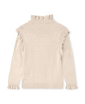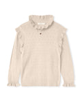 Pointelle-strikket bluse fra FLIINK i myk og lett kvalitet. Blusen har lange ermer med rysjer, rund ribbet halsutringning og rysjer på skuldrene. Blusen har et broderi med et lite hjerte foran. Dette produktet inneholder LENZING™ ECOVERO™ viskose. Viskose er et naturlig materiale. Fibrene som brukes til å lage LENZING™ ECOVERO™ viskose er hentet fra ansvarlig skogbruk og produsert på en måte som har lavere miljøpåvirkning enn konvensjonell viskose. LENZING™ ECOVERO™ viskose er et gjennomtenkt valg.