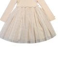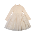 Ballerina-drømmer! Denne vakre kjolen med tyllskjørt vil forvandle den lille jenta di til en fe! Den strikkede toppen med høy hals vil sørge for at den lille jenta di holder seg varm og ser nydelig ut i julen. Denne kjolen blir en garderobefavoritt på kort tid!