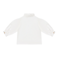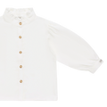 Vakker som en snøklokke! Tilfør et snev av eleganse til den lilles antrekk med den vakre Fini-blusen. Takket være en søt rysjekrage, poofy-ermer og knappelukking foran, puster denne blusen stil og passer perfekt til ethvert plagg fra den lilles garderobe. Laget av 100 % bomull.