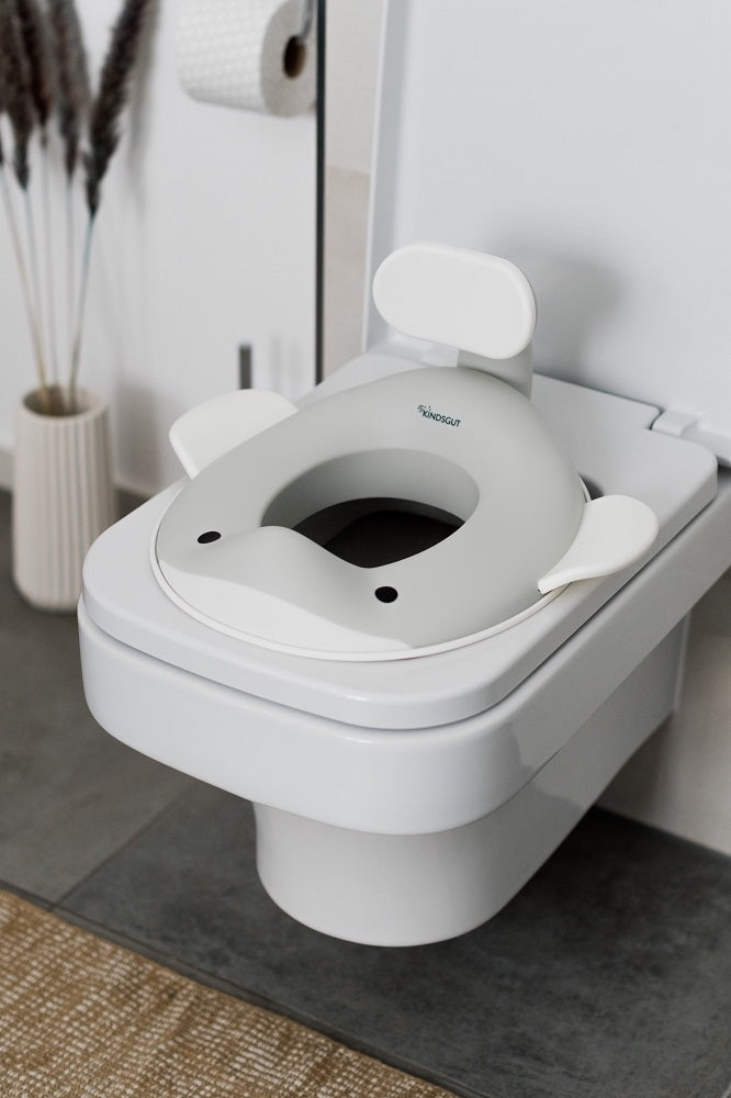 Det sklisikre toalettsetet i hvaldesign fra Kindsgut kombinerer det beste innen komfort med et attraktivt design, noe som får mer enn bare barns øyne til å lyse opp. Endelig er det et nytt medlem i Kindsgut hvalfamilie: Etter at «Potty», hvalpotten, ble en populær bestselger, finnes det nå et toalettsete med et veldig likt utseende. Dette kan brukes som et oppfølgingsprodukt, som et alternativ eller ved siden av Potty – og garantert mye moro for hele familien under potetreningen.