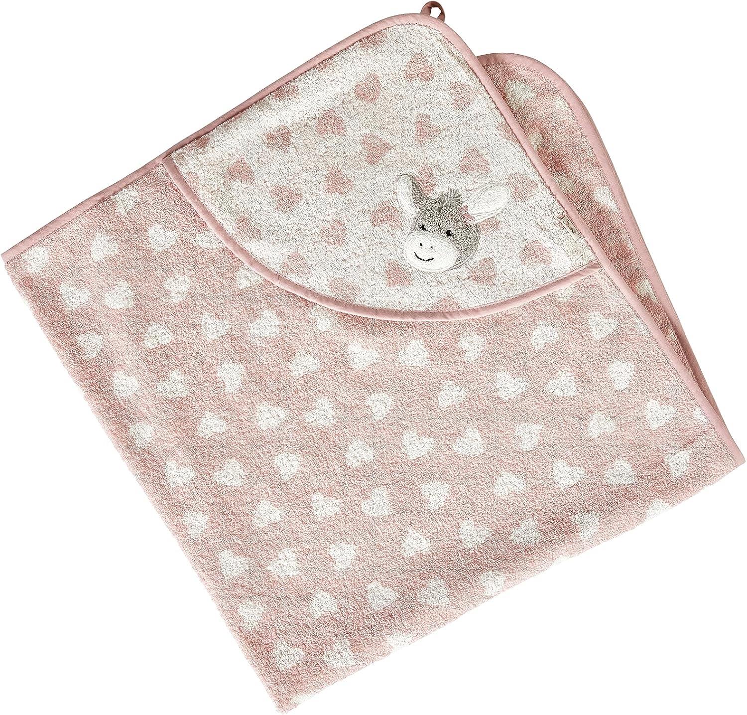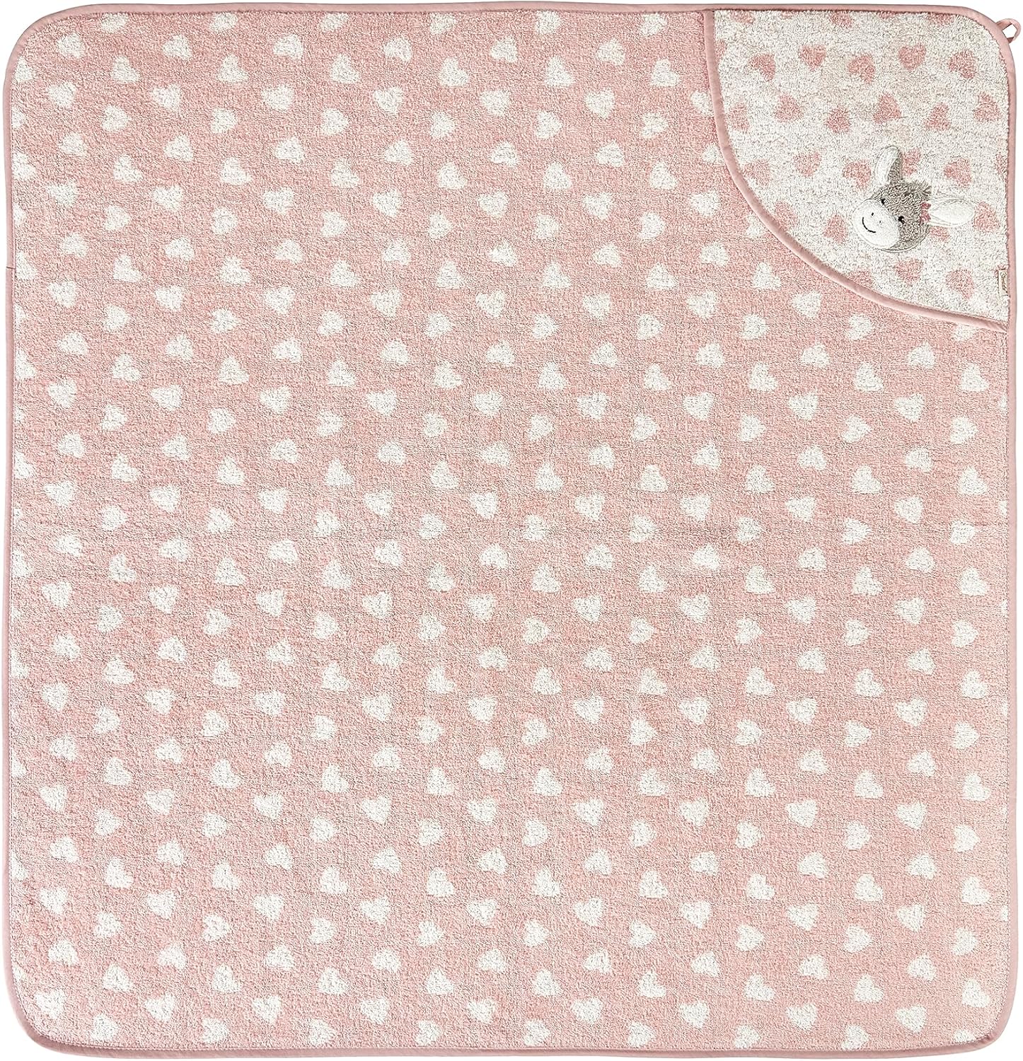 Emmi girl badehåndkle med hette i rosa og med et heldekkende hjertemotiv