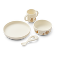 LIEWOOD's best selgende servise i silikon – alt sammen i ét praktisk set. Vivi-settet i silikon indeholder kopp,skål, tallerken og skje.