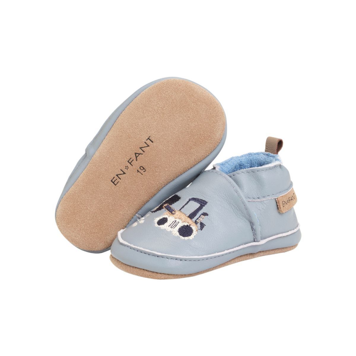 En Fant - Tøfler i skinn Loader Tradewinds er myke og gode skinntøfler med et applikert motiv. Naturmateriale og den myke sålen gjør at foten får puste og utvikle seg som normalt, samtidig som barnet får feste og beskyttelse mot underlaget. Kjempeflotte tøfler til å bruke hjemme og i barnehagen - perfekt for barn som lærer å gå.