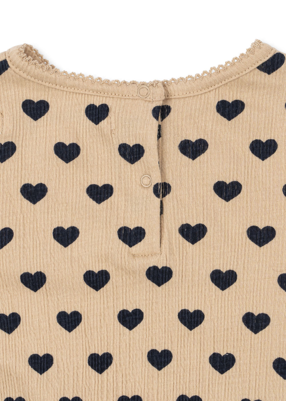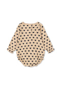Langermet heldrakt i mykt bomullsstoff. Trykknapper i skrittet for enkel påkledning.