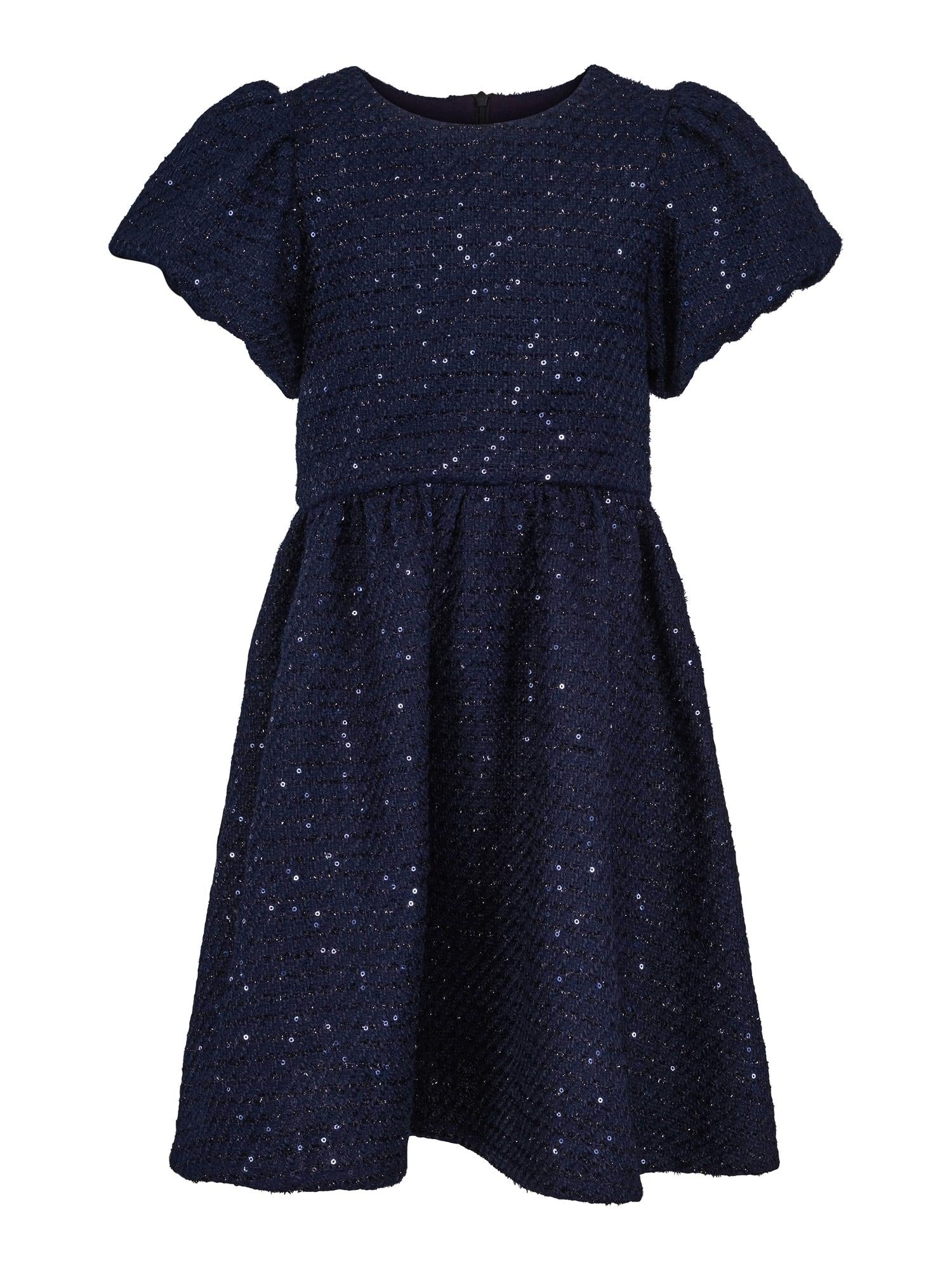 Elegant kjole i bouclé-stoff med store, dekorative puffermer og glitrende paljettdetaljer. Sofie-kjolen har en klassisk fasong og passer perfekt til høytider, selskaper og spesielle anledninger.