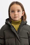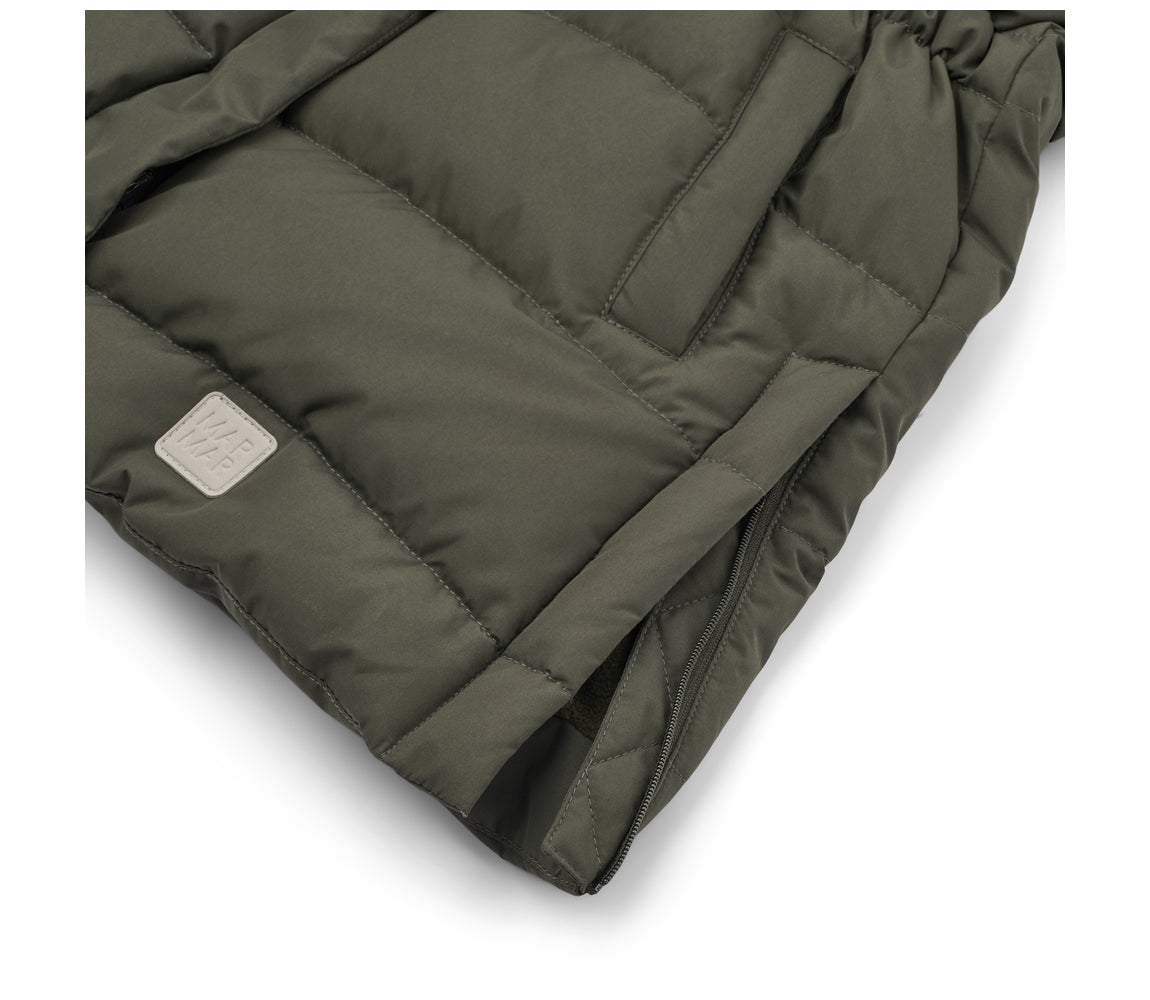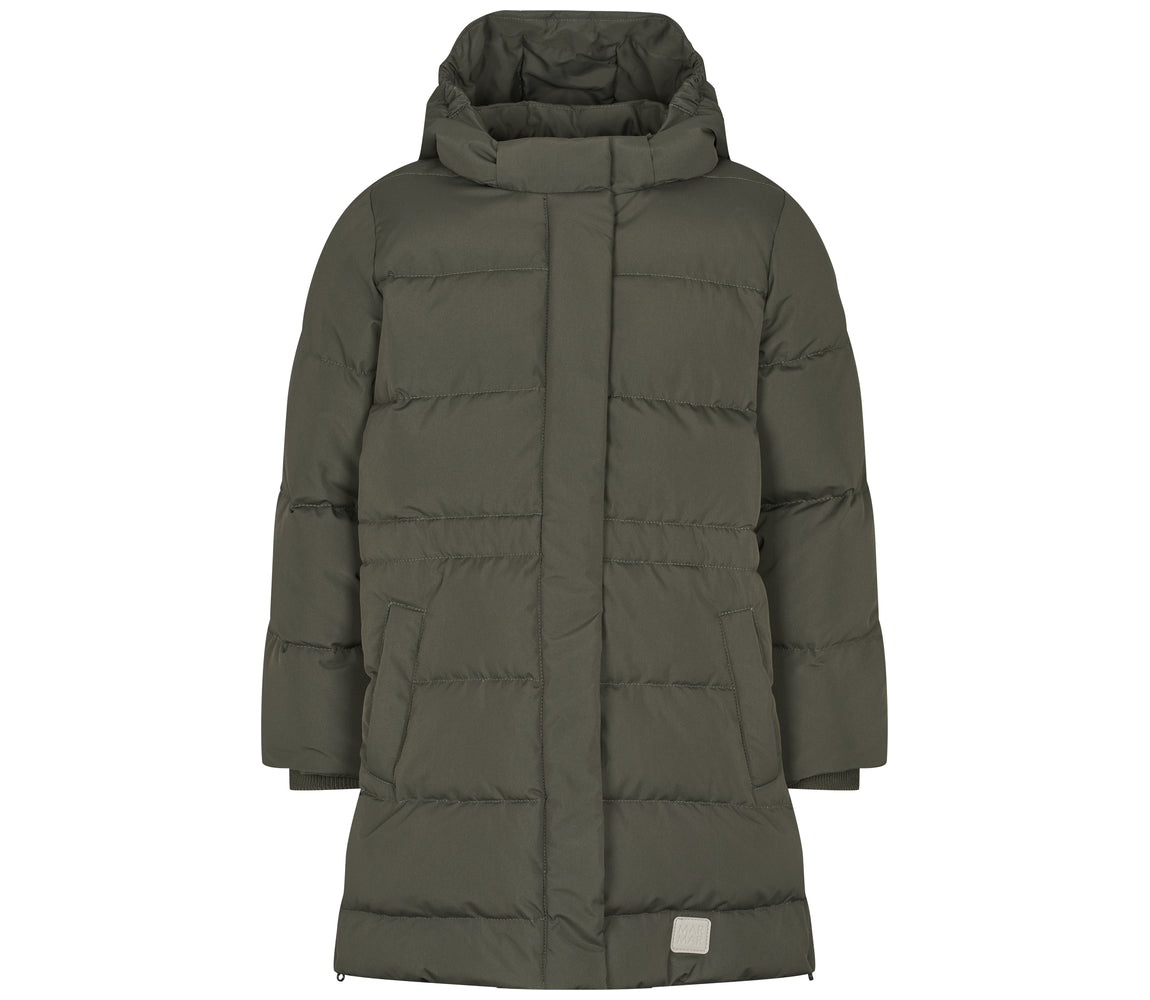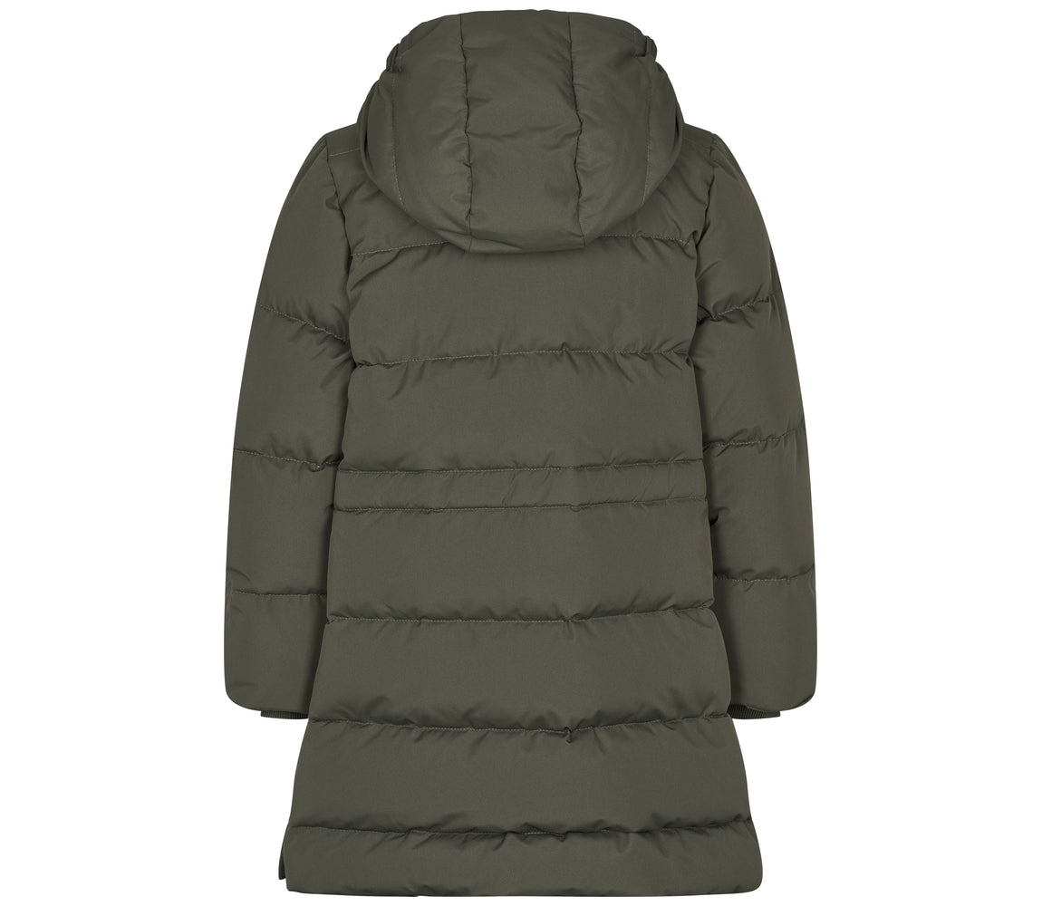 Lang og komfortabel dunjakke designet for å holde barnet ditt varmt og komfortabelt i de kalde månedene. Jakken har en lengre passform som gir ekstra beskyttelse mot kulde og vind. Dunjakken har elastikk på innsiden som kan strammes i midjen for et mer feminint utseende. Jakken har to skråstilte sidelommer hvor hendene kan holdes varme eller små gjenstander kan oppbevares. Dunjakken har en avtakbar hette, glidelåser på sidene som kan åpnes for å øke bevegelsesfriheten, noe som gjør jakken ideell for aktiv lek og utendørseventyr. Dunjakken lukkes med en skjult glidelåslukking og trykknapper foran som gir ekstra beskyttelse mot kulde og vind.