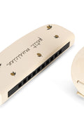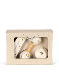 Sett med musikkinstrumenter i tre, inkludert munnspill, maracas og håndkastanjett. Instrumentene ligger i en søt liten koffert som er ideell for oppbevaring.