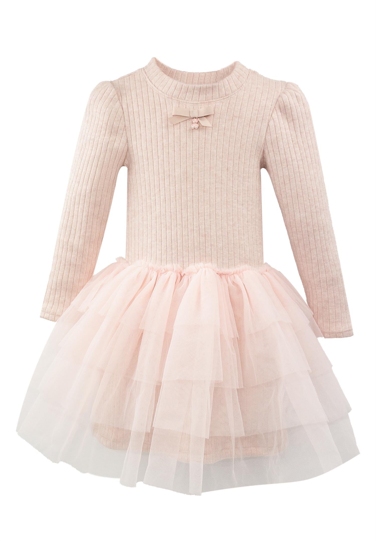 Denne rosa kjolen fra Jamiks er ideell for fester og spesielle anledninger. Den er ribbestrikket i en supermyk viskoseblanding, og har en søt sløyfe i halsen med et lite bamseanheng. Det er delikate tylllag på skjørtet for en vakker sving.