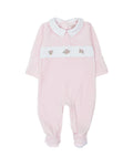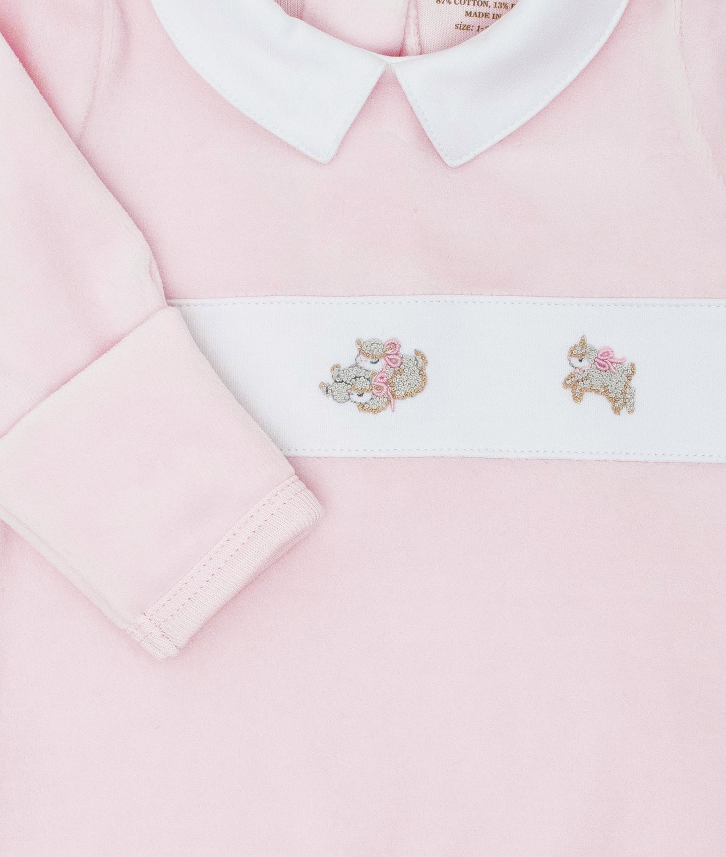 Counting Sheep Aubrey Footie fra Livly er en myk og koselig babydress i deilig plysjkvalitet. Den har en søt og stilfull krage, praktiske nickelfrie trykknapper foran og et brodert lite får på brystet som gir en sjarmerende detalj. Perfekt for både søvn og lek, og skånsom mot barnets hud.