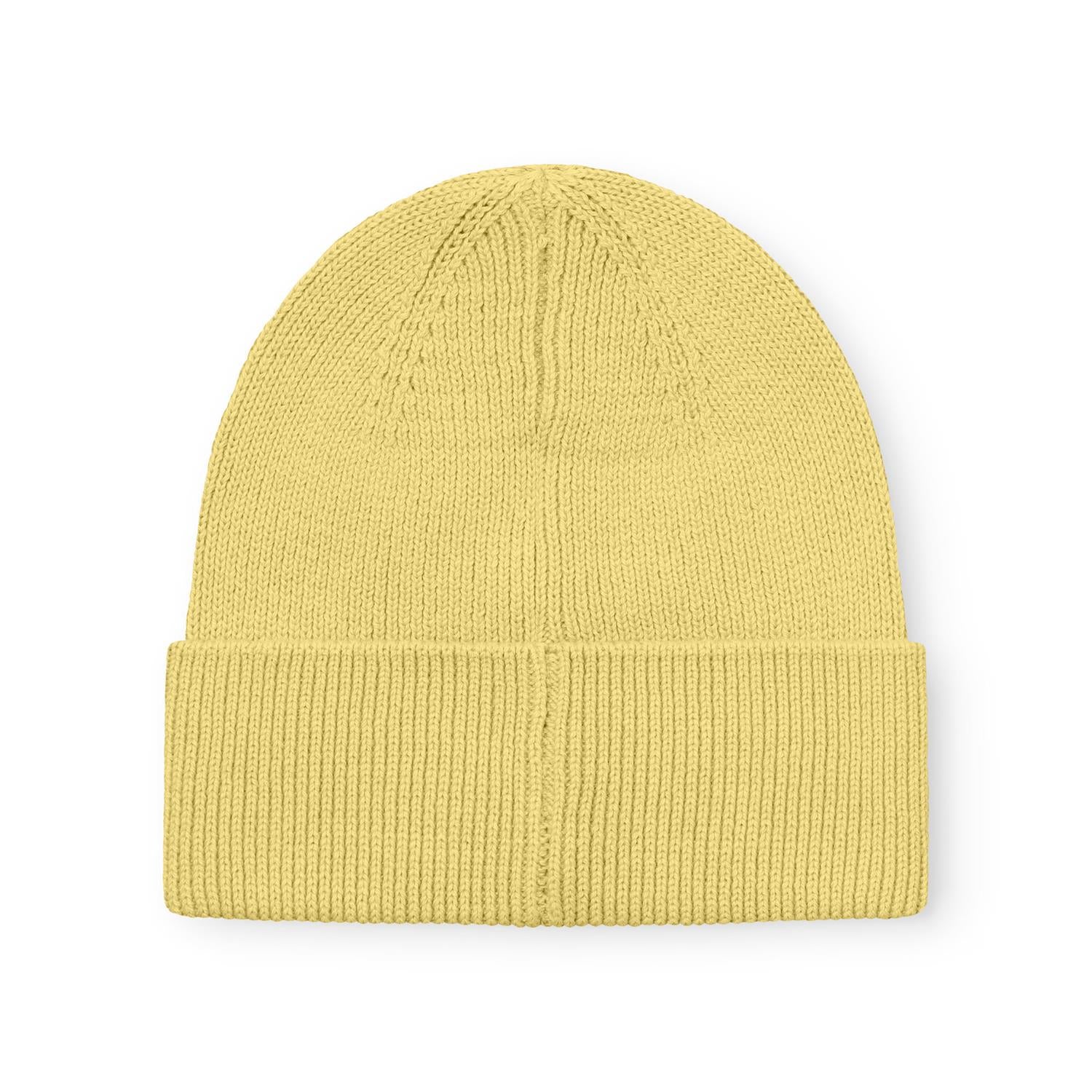 Ensfarget, strikket lue for barn med MINI A TURE-logobroderi foran. Laget av myk økologisk bomull og sertifisert OEKO-TEX® Standard 100.