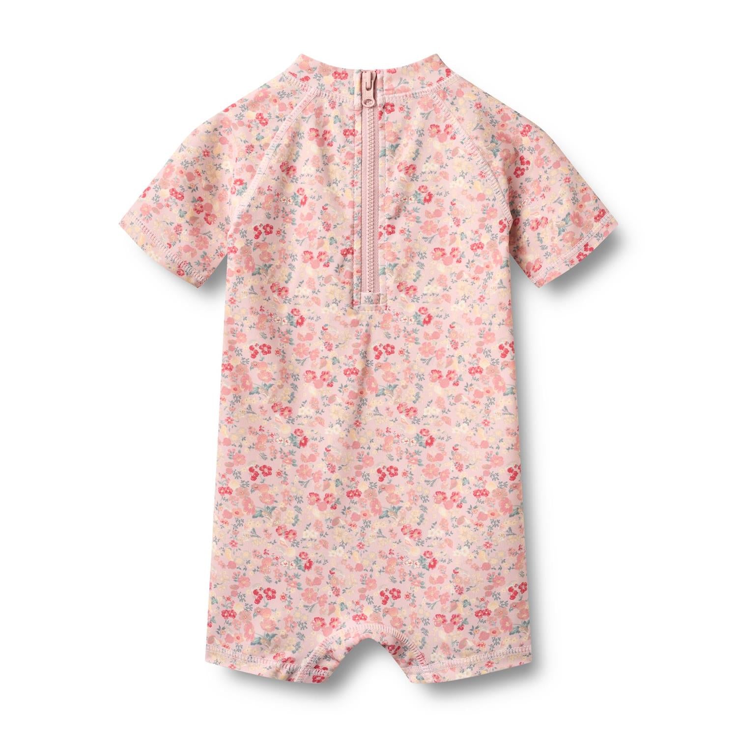 Badedrakten er tettsittende og har en liten krage for å beskytte nakken mot solen og raglanermer. Den har en glidelås i ryggen for å gjøre det enkelt for deg å kle på babyen din. Stilen har UV 40+/UPF 40+ beskyttelse. Badedrakten kan enkelt styles med en av våre lette kjoler eller skjorter for å fullføre det søte sommerutseendet.
